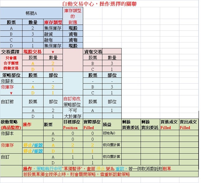 自動交易中心操作關聯性,若有錯誤請修正!