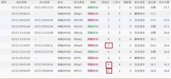 小幫手看您自動交易委託時間,7/12 一開盤的是現買ROD,沒有看到賣出。