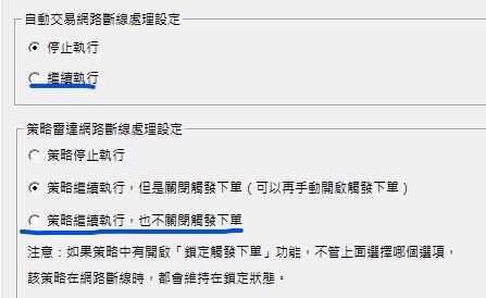 如果策略中沒有設定斷線後繼續執行的話,那麼策略會直接中斷。