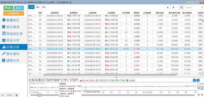 但我的策略不可能1/18到8/5都沒有符合出場條件喔!可能回測部分有些問題.