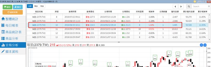 2379 在 2019/09/05 時有進行除息故此筆交易實際上為獲利。