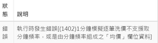 如同截圖中的說明描述,均價欄位無法使用1分鐘逐筆洗價。