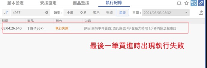 今天測試自動交易時發生錯誤 前面兩次進出都沒有問題