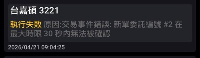 這是送出委託之後,超過30秒沒有收到委託回報的錯誤訊息。