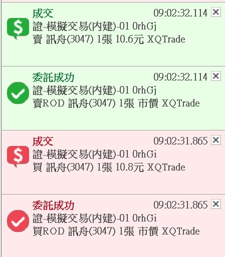 以訊舟為例,9:02:31.865進場,9:02:32.114就出場,但出場價完全沒碰到停利的點位