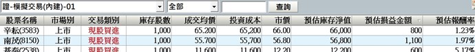 今天測試,拖了很久庫存才出現,而且進了四檔股票,但只出現兩檔