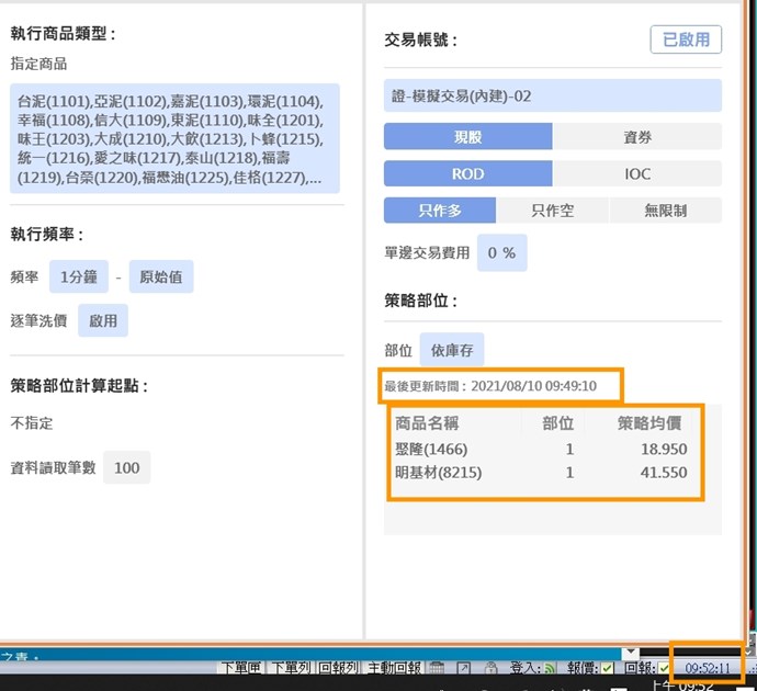 發現股票買進或賣出後,庫存並沒有即時更新,要等到新的K棒開始時,才會更新 (使用5分K)