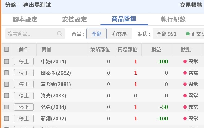 出現異常的股票似乎就暫停監控了,但如果還是有股票在庫存,無法即時看到損益,實不是很方便去做後續處理