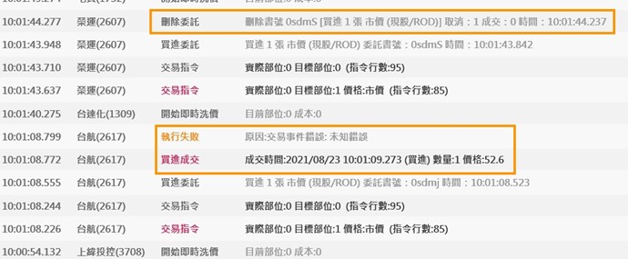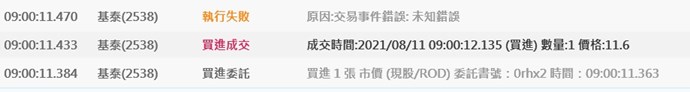 問題2: 很多股票買進成功,但馬上出現執行失敗,且說明為"未知錯誤"