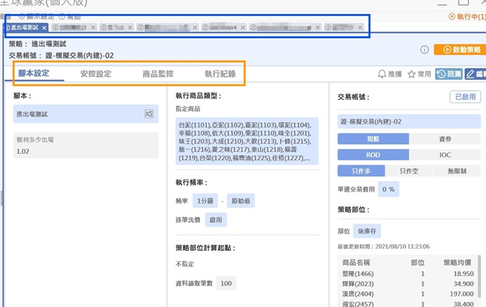 啟動後策略的部位與庫存皆獨立於外部的操作。