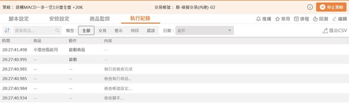 但出現 跟我今日早上一樣的狀況,一樣的策略,兩種自動交易,一個瘋狂進出場,一個是進出場一次。
