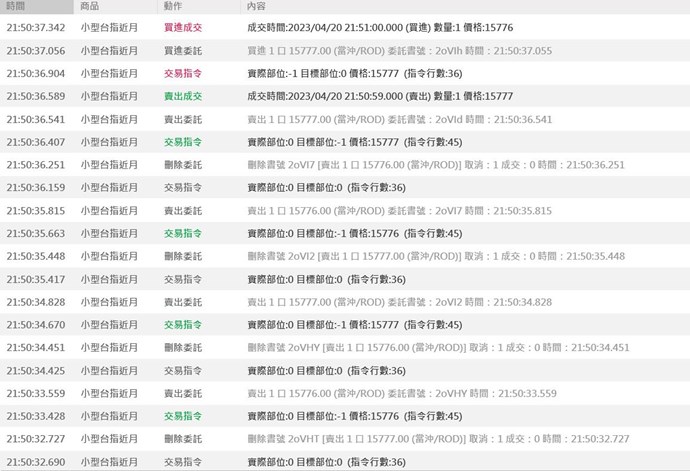 另外您 4/20 的腳本只有用 position 來判斷,這也會因為進出場邏輯撰寫導致快速的下單刪單。