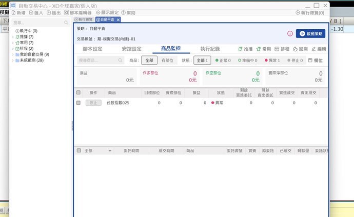 狀態會出現準備中 然後 狀態 顯示 異常 接著自動停止策略