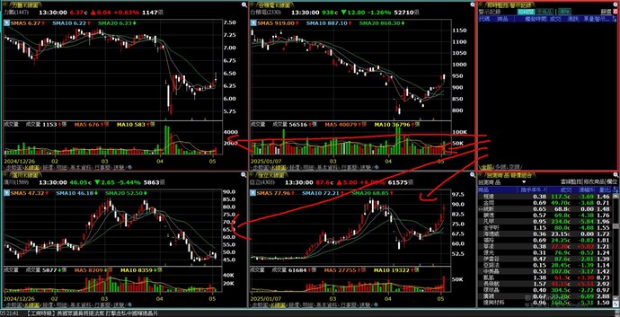 如附圖,我有用XScript寫了一個當沖的交易腳本,想請問如果我購買了盤中量化交易模組後,我寫的策略所選的股票是否會直接及時地出現在即時監控-警示紀錄(圖中右上)? 如果是的話,假設我的策略今天選出了5檔股票,他能夠把這5檔股票自動分配到左手邊的四個即時走勢圖嗎? 如果不行的話,是不是只能一個一個手動輸入? 手速不夠快的話不就很容易錯過進場時機? 還是有沒有更好的方法? P.s. 目前不考慮全自動化交易