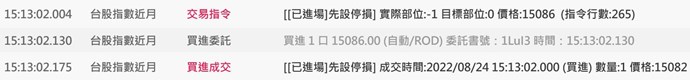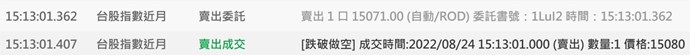 就圖上來看,您賣出目標價為 15071 但成交在 15080。