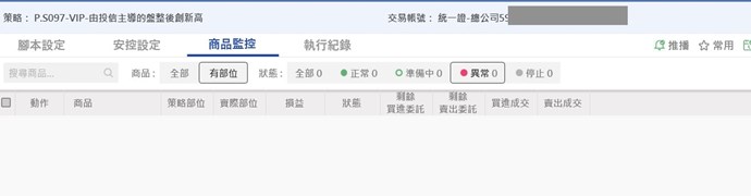 請問小幫手, 自動交易的總覽中有看到部位及損益(圖二), 但點擊進去策略後部位卻是空的(圖一), 為什麼?