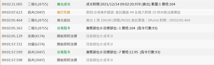 不過就小幫手猜測,您遇到的狀況應該是送單以後,券商那邊過了10秒還沒有回報委託是否成功,所以交易策略就將其中斷。