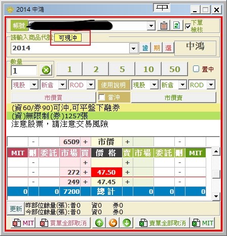 券商系統是可現沖 ,但是XQ的欄位卻沒有 買賣現沖OR先買現沖 導致沒有觸發下單