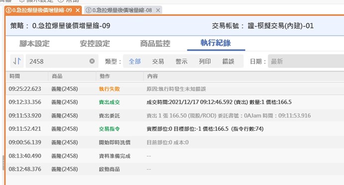 如題12/17當沖交易1分K,執行時發生未知錯誤,不知道是什麼原因