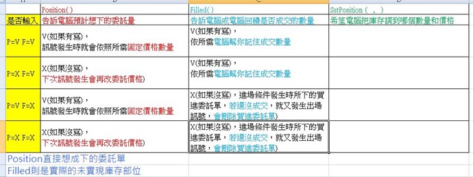 Position(N)、SetPosition(N1)的關係式= N+X=N1 ,=>X=N1-N 此X變數是計算後要執行的委託量