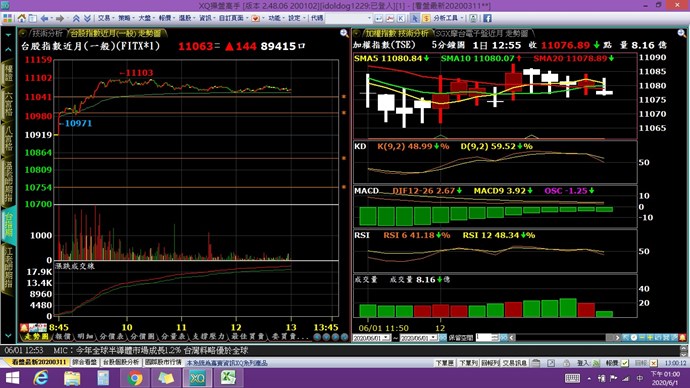 今日使用XQ操盤高手時,發現自己設定頁籤的加權指數不會隨時間跳動(圖右),但台指近月指數會跳動(圖左),但我切到國際股市行情去看加權指數卻會隨時間跳動,請求如何能解決~感謝