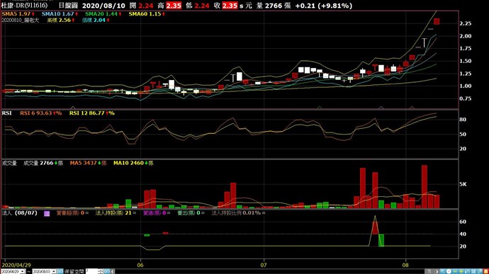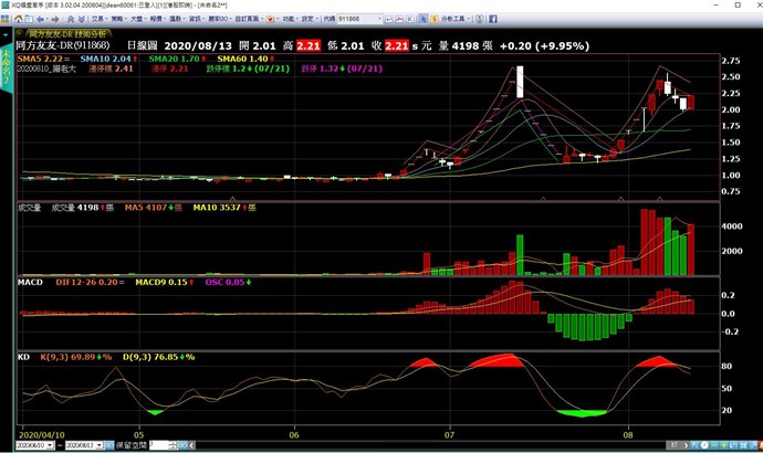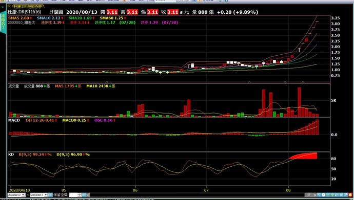 圖看起來似乎還是錯的,不過因為線太多,顏色都很接近,不是很確定,基本上我要做的是,在當天的漲停價上方約9%處顯示,在跌停價下方約9%處顯示,目前這兩檔的漲跌停標記都顯示在K棒下方處,再麻煩您確認,謝謝。
