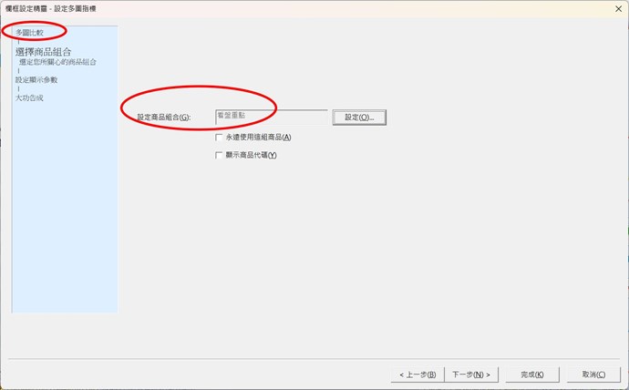 3. 多圖比較的商品組合只能使用該頁的欄框設定精靈來設定,無法與參考商品連動。