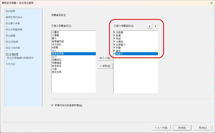 2. 可以用欄框設定精靈,重新設定要顯示在畫面上的資訊項目。