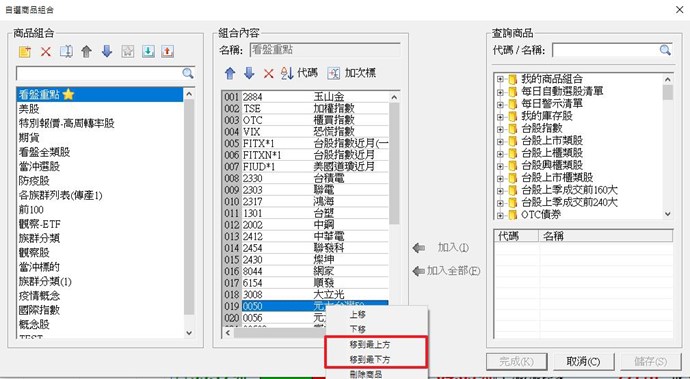 如題,每次新增一組商品組合或是個股,卻是新增在最底層