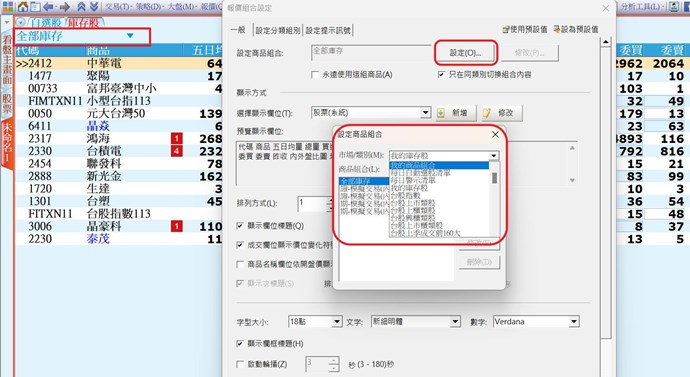 您好,請在此自選股組合頁面上按右鍵/設定,再看您的「設定商品組合」是否有設定到「我的庫存股」,