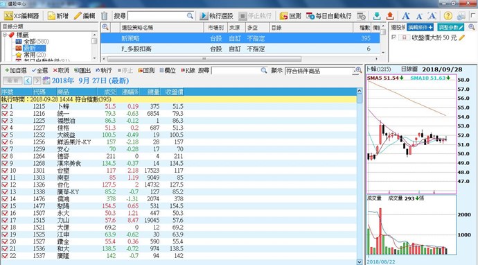 2 第二個選股模組(F_多股扣高)套用自選組合9.28-3