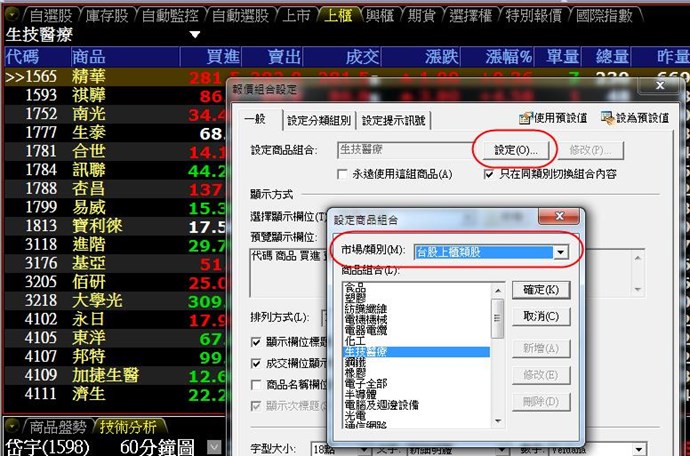 1.若上市/櫃類股有顯示錯誤內容,可以手動更改為正確內容(在頁面上按「右鍵/設定」),如下圖示。