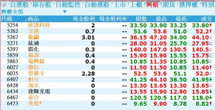 您好,有關反應興櫃配股資料問題已經修正,可以再確認看看(報價欄位與DDE輸出會是相同的資料)。