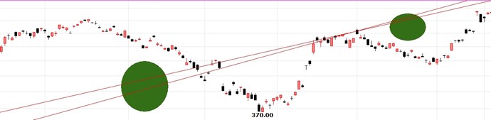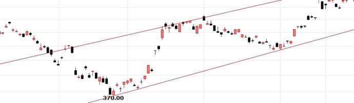 關於“XQ畫趨勢線時伸縮大小線會跑掉(斜率會有變化)”的問題,此問題會發生在對數座標軸,因目前畫圖是根據滑鼠點擊放開的兩個”價位”來畫線,而對數座標的格距並不是照座標的差距來畫的(80~90較260~270高),如圖所示,我們在250~260畫一條線段,複製到80~90,可以明顯看出為了保持價位差距10,斜率勢必會提升,所以當前的畫圖方法並沒有問題,如果要在對數座標畫出平行線,切換到其他座標軸會產生其他問題,(如:在對數座標複製斜率和滑鼠放開的點而讓線平行,在其他座標軸就不會跟對數座標在同個價位上,也不會是平行線)。所以目前在對數座標軸分析線的畫法會維持不變。