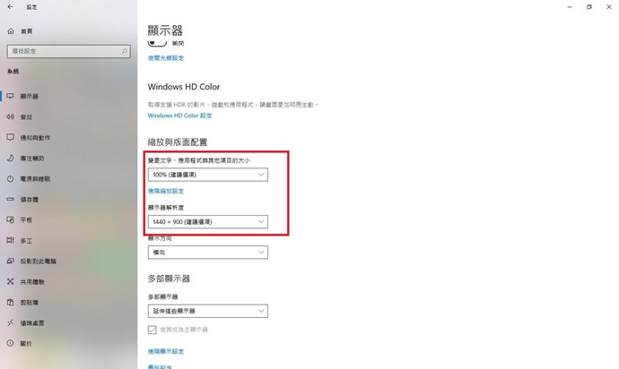 您好,請幫忙提供您的解析度設定(如下圖),目前解析度和文字大小設定是多少呢?