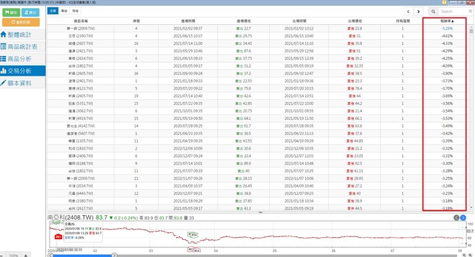 舉例來說參考附圖,科風的報酬率為 -11.05% 但這是因為進場後的符合停損出場的價格是個跳空價格,所以只能在那邊出場。