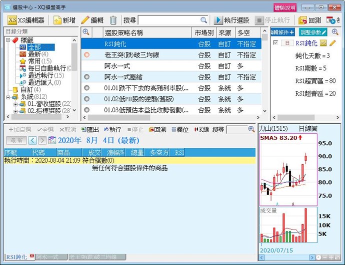 我XS寫了一個撈出RSI鈍化的程式,但一隻都撈不到,