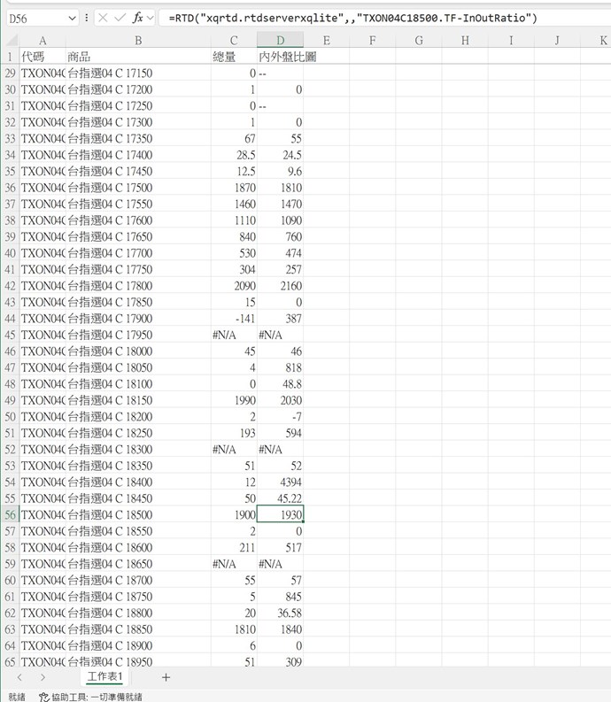 RTD64輸出的資料內外盤比竟然有破百的數字?