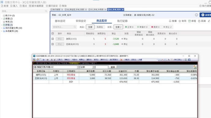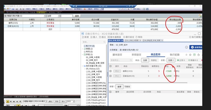 2.既然未實現損已沒有包含交易費用,您可以把自動交易的交易費用設定為0應該就可以得到和未實現損益相同的數值。