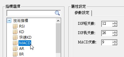 點「MACD」(系統內建的 MACD) ,右側就可以設定相關參數