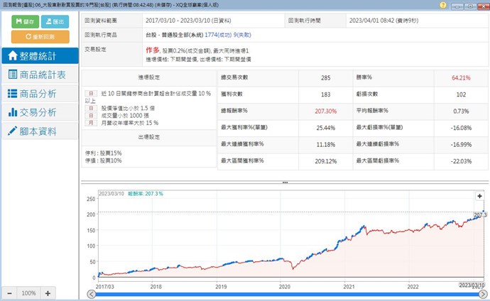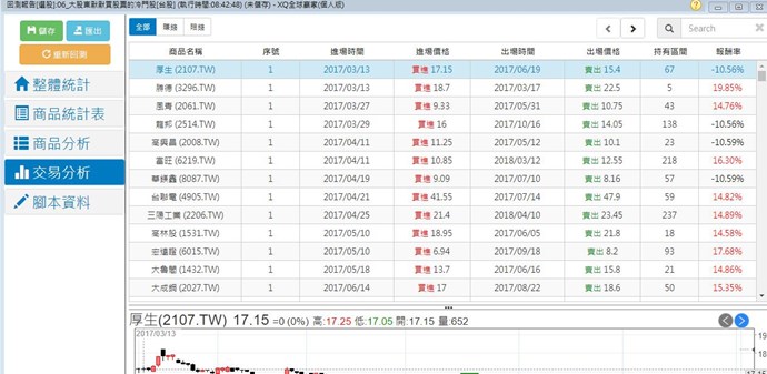 如果您是指選股回測是否能夠顯示進場的時間的話,就小幫手所知是沒辦法的,因為選股只有提供日頻率以上的資訊。
