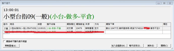 但是我平倉策略選商品是: 小型台指09(一般)