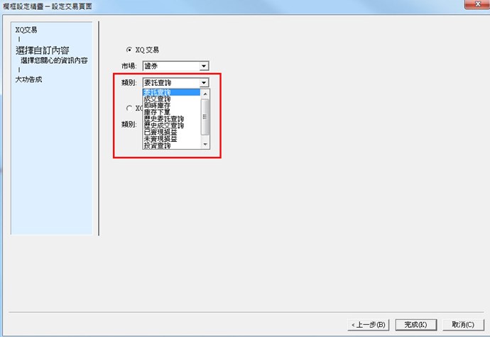 例如我設定 XQ交易,卻無法像綜合看盤一樣有委託、成交、下單等選項