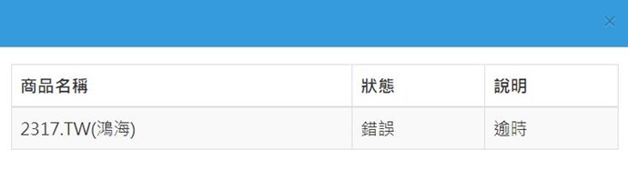 回測的邏輯計算量過大,會發生「逾時」的錯誤,導致無法順利完成回測,以上說明,謝謝。