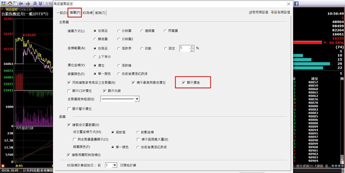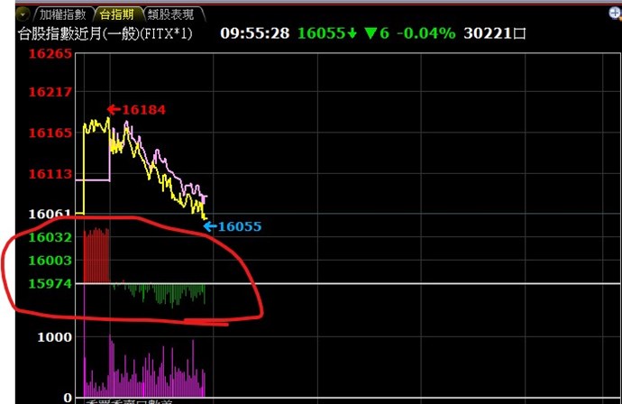 您好,此為「價差」(在商品盤勢按「右鍵/設定」的“繪圖”頁籤,可以勾選「價差」)。