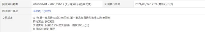 第二個腳本,想要藉由xf_GetValue來取得21天前的收盤價,可是卻回測失敗,原因是逾時。