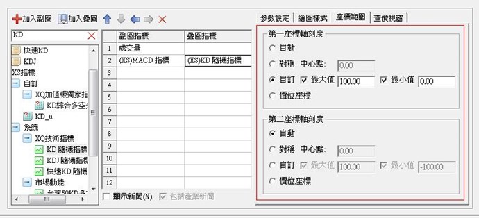 請問如何將不同座標整合在一起使用,比方說KD RSI 是以% 中軸是50,但MACD的中軸線是 0 ,那要如何合併使用,