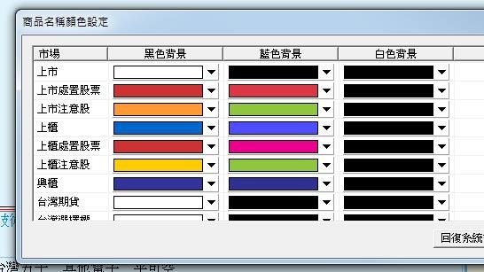 請問可以貼一下上市櫃顏色區分的完整設定嗎? 有ㄉㄧㄢˇ找不到