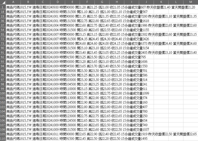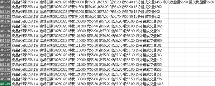 完整程式碼貼不上來,就是時間往後類推,想把選股策略中的分鐘k棒資料印出來
