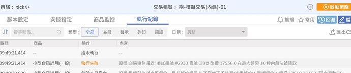 您可以試著將交易回報等待時間調長看是否還是有相同狀況發生。(參考附圖)